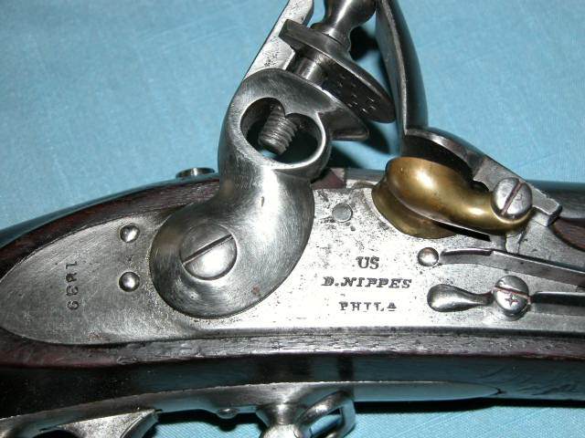 The Model 1816 U.S. Flintlock Musket was produced by both the Springfield (1816-1840) and Harper's Ferry (1816-1844) Armories. During this period, three distinct styles of M1816 developed. The early, or first, style is most often characterized by the use of a stud in front of the trigger guard for mounting of the rear sling swivel, and usually carries an 1817 date on the lock plate. Type II M1816 have browned iron and barrel, have the sling swivel integral to the trigger guard, and usually carry 1822 to 1831 dates. The Type III M1816's have bright finished barrels and furniture (difficult to tell after 175 years!) and are dated 1831 to 1844. The M1816 is distinguished as being the most abundantly produced of all American flintlock muskets, with more than 325,000 produced at Springfield and 350,000 produced at Harper's Ferry. Additionally, more than a dozen contractors also made Model 1816 Muskets during it's production years, adding more than 146,000 muskets for a grand total of 821,421 M1816 Muskets produced. (Tom Kelley)