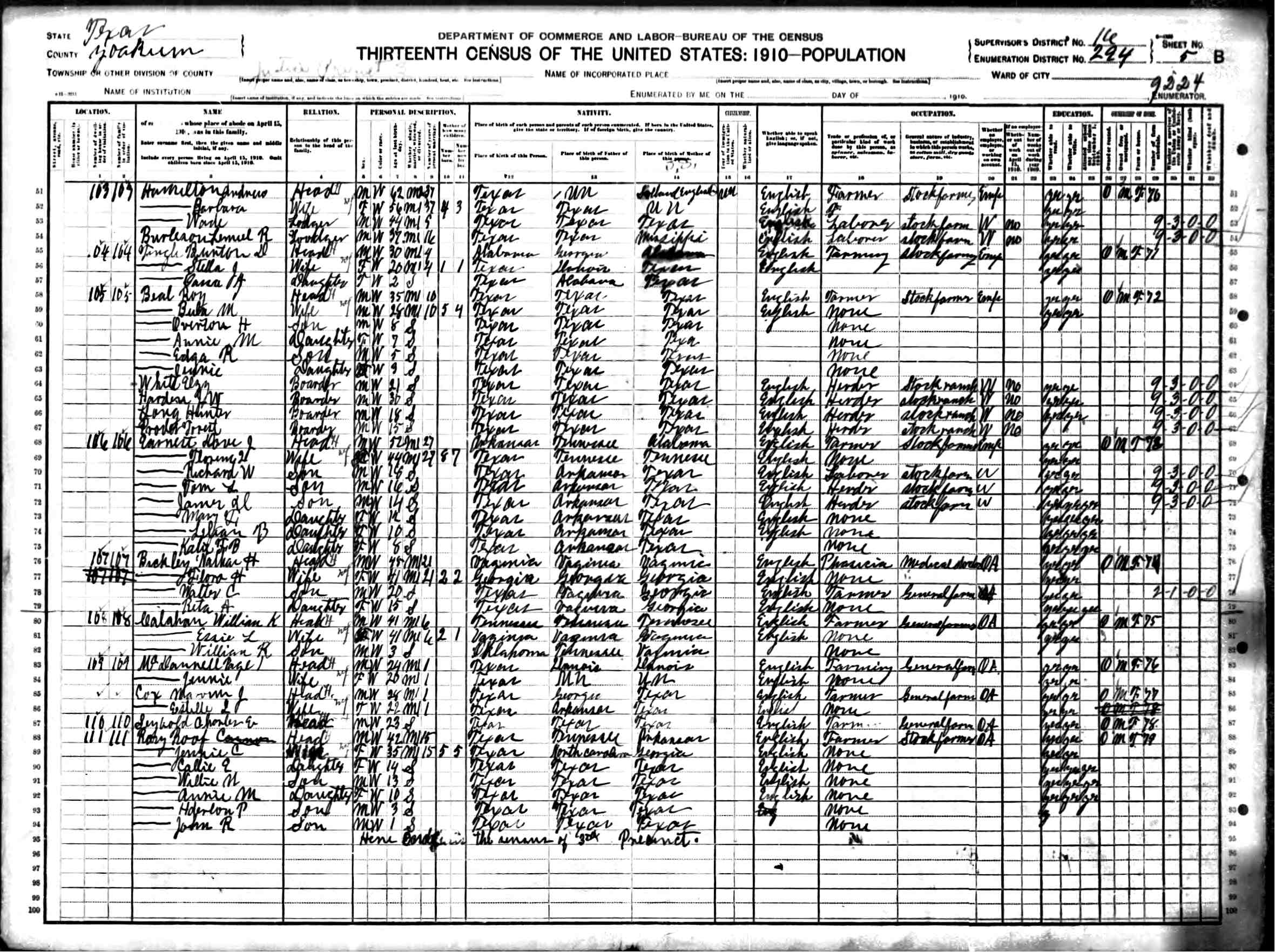 1910 United States Federal Census > Texas > Yoakum > Justice Precinct 3 > District 294 > Line 82