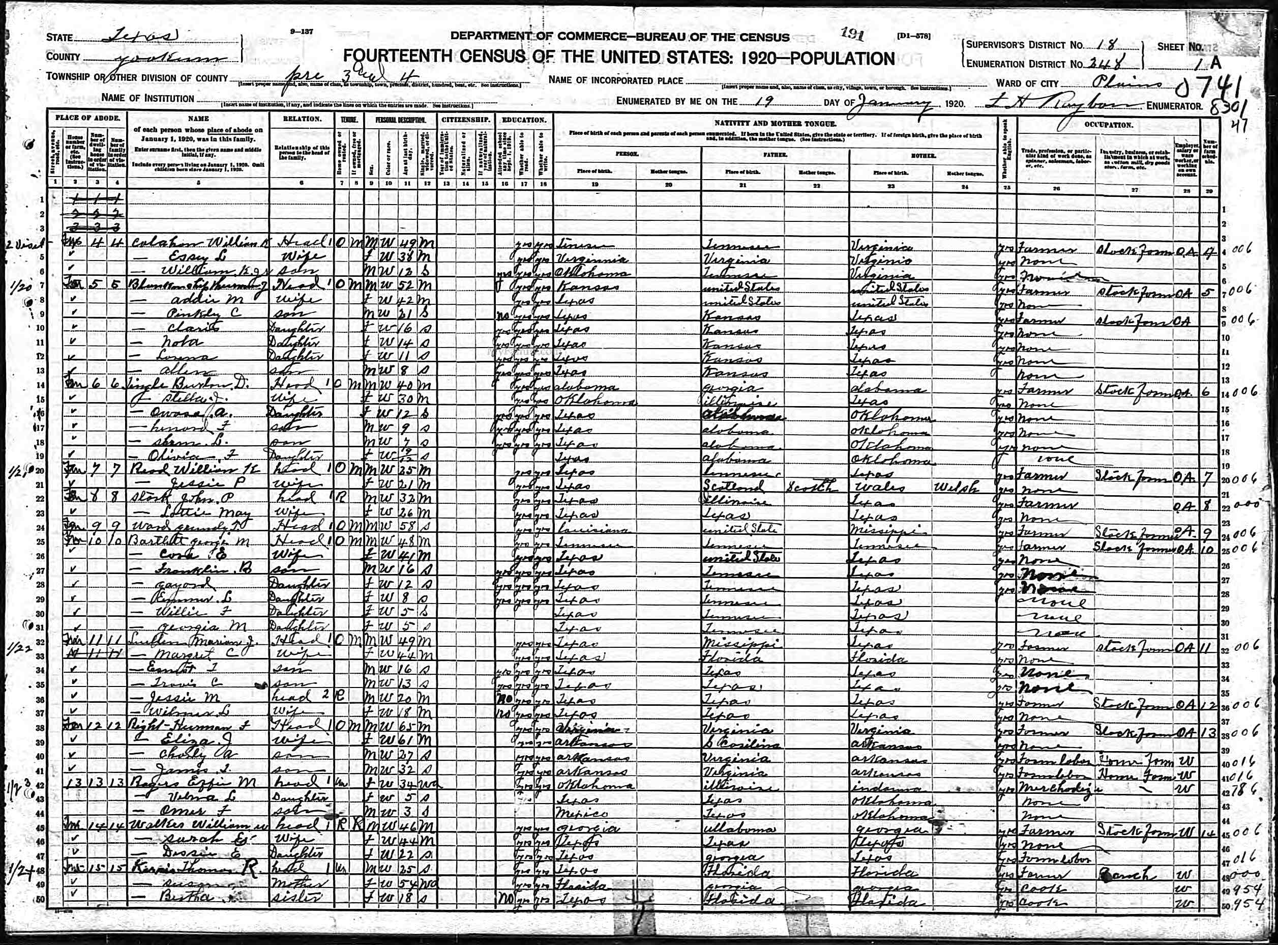 1920 United States Federal Census > Texas > Yoakum > Justice Precincts 3 and 4 > District 248 > Line 6