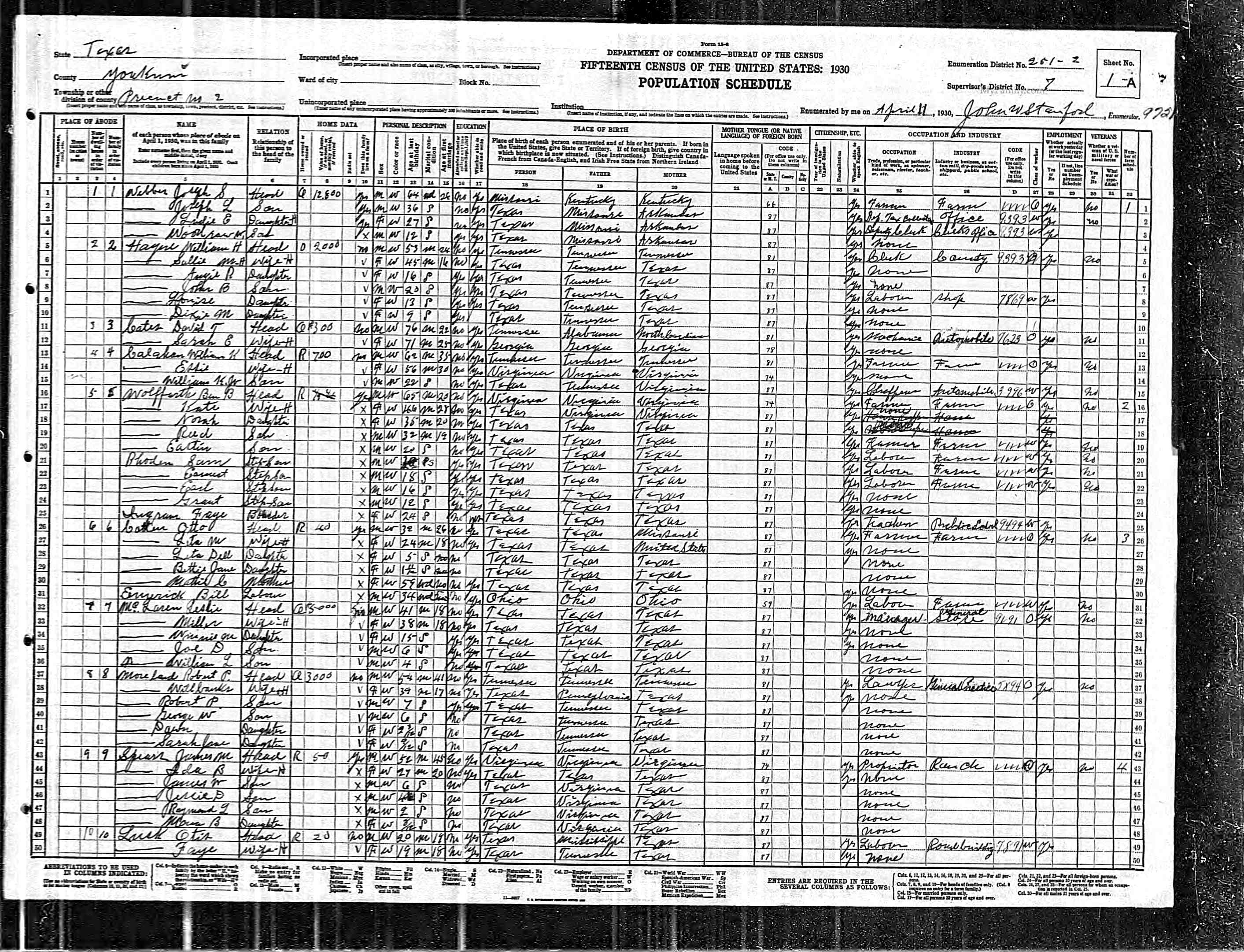 1930 United States Federal Census > Texas > Yoakum > Precinct 2 > District 2 > Line 15