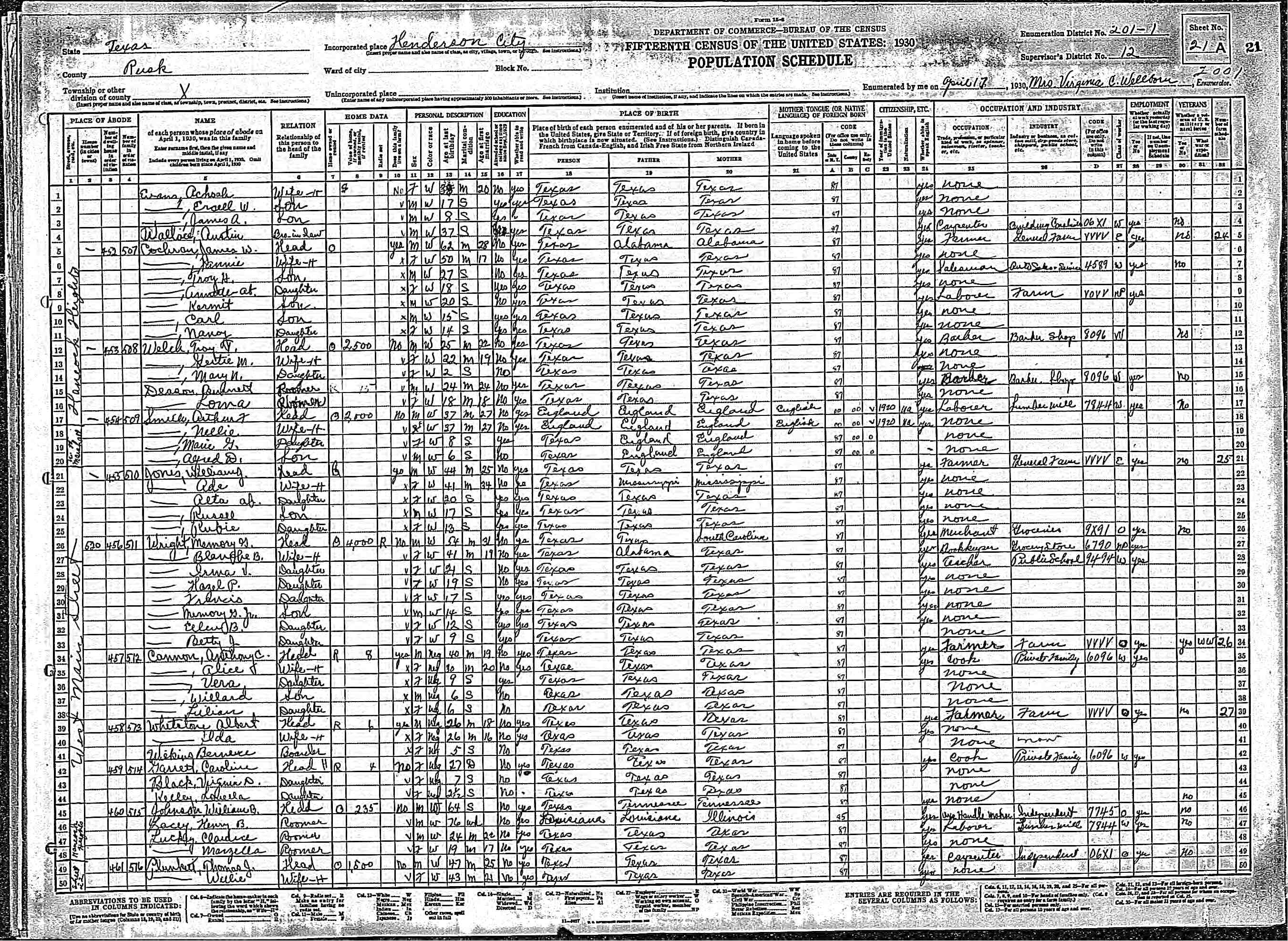 1930 United States Federal Census > Texas > Rusk > Henderson > District 1 >Line 15