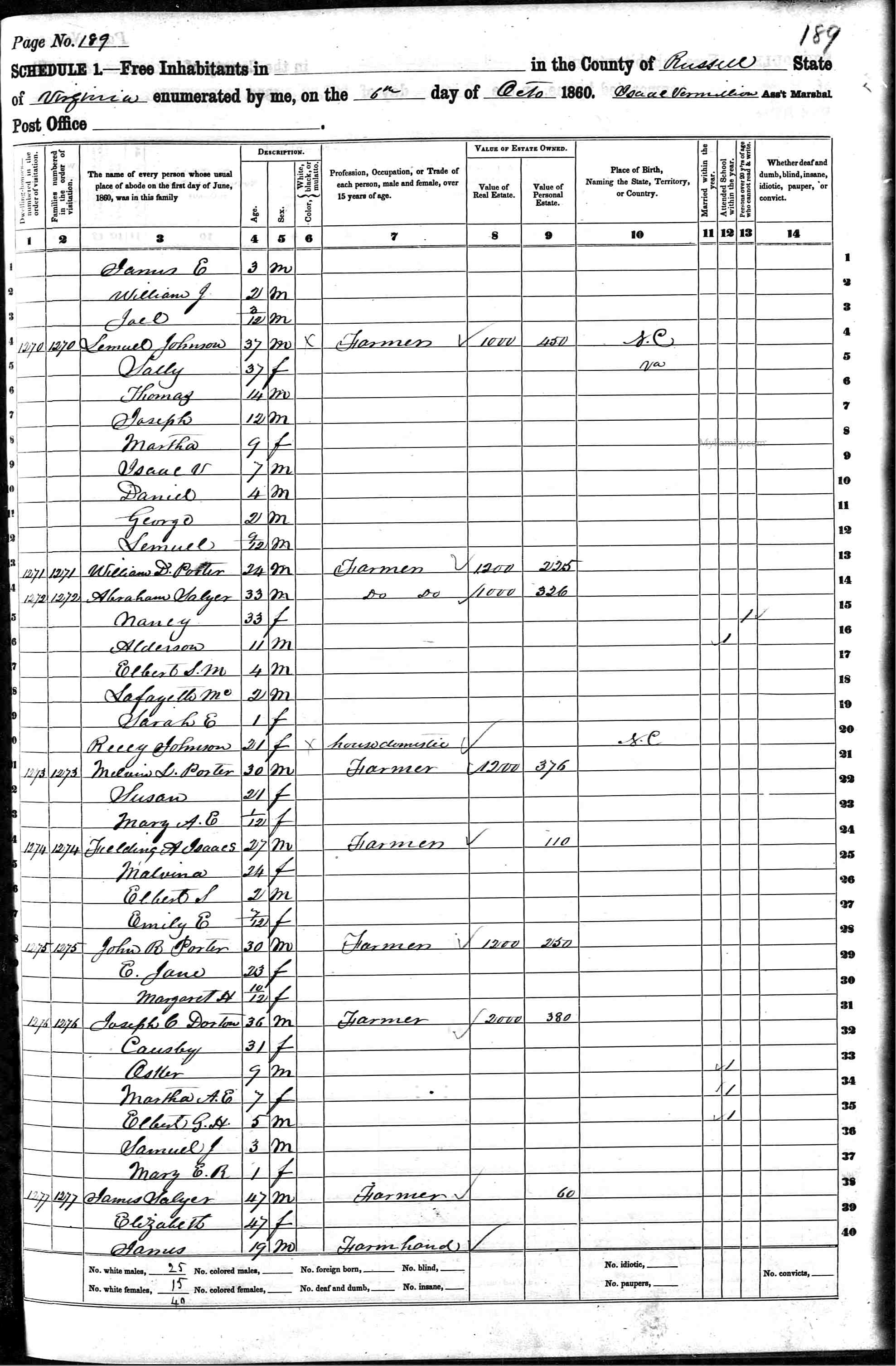 1860 United States Federal Census > Virginia > Russell > Not Stated > Line 31
