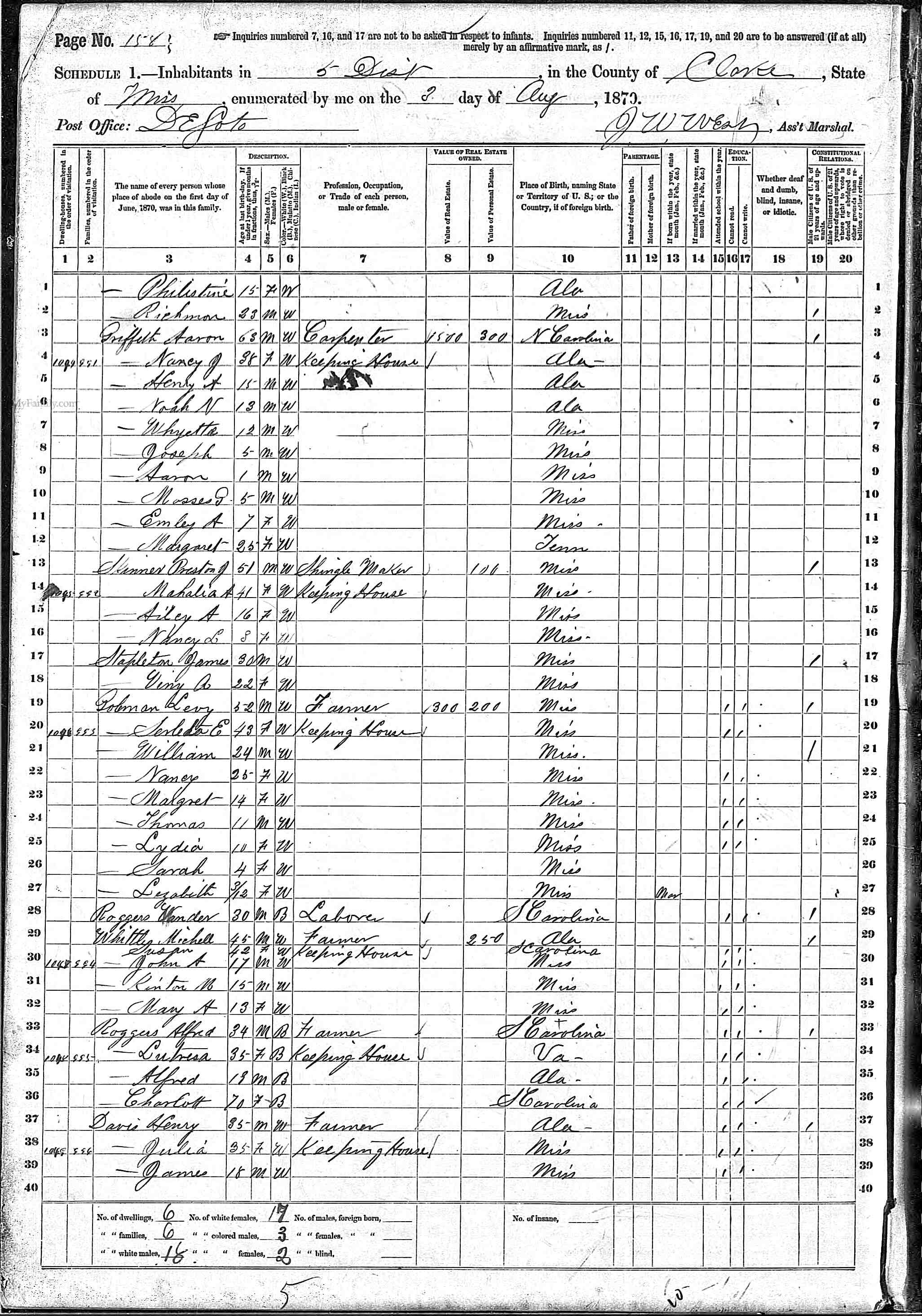 1870 United States Federal Census > Mississippi > Clarke > District 5 > Line 9