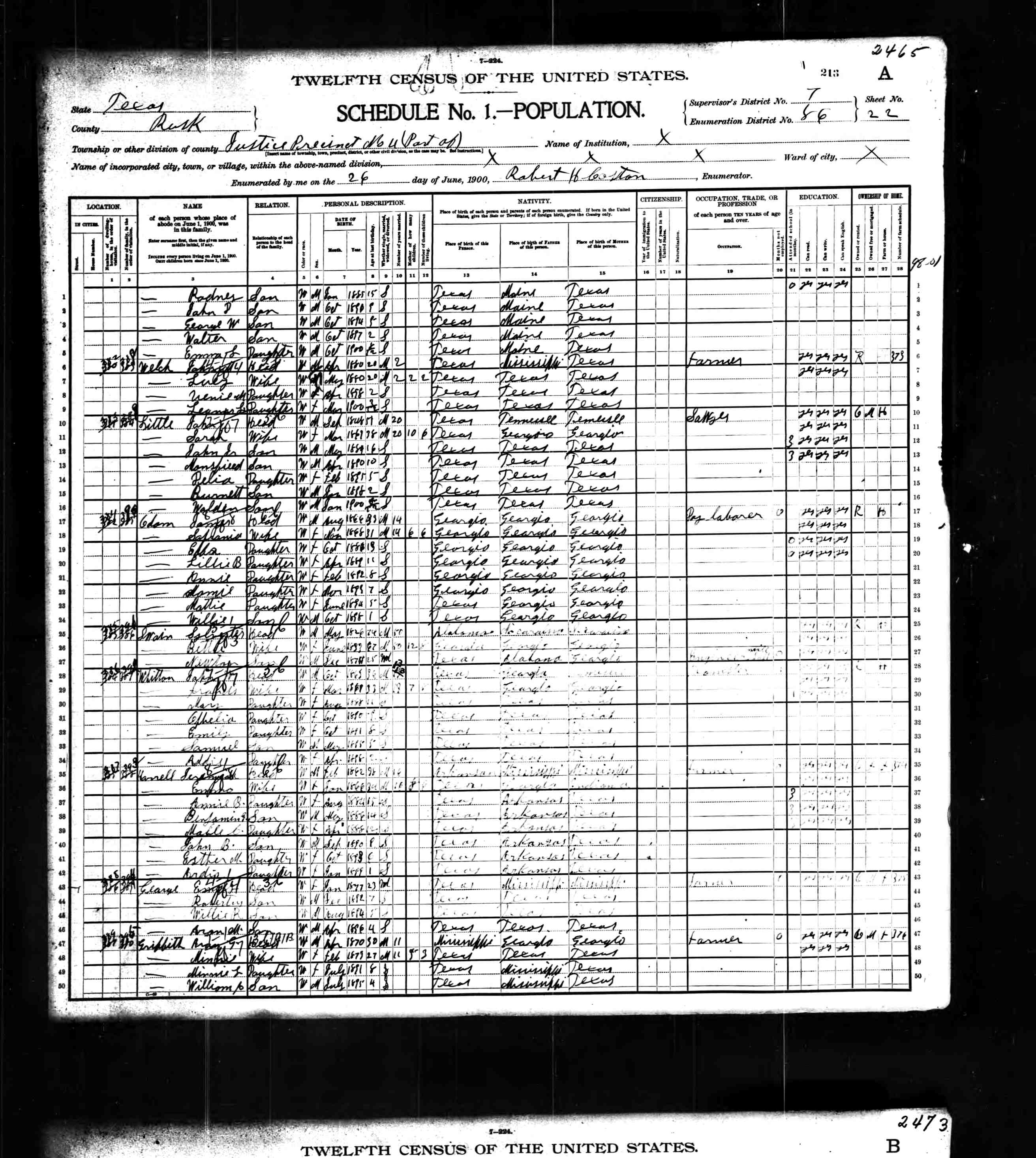 1900 United States Federal Census > Texas > Rusk > Justice Precinct 4 > District 86 > Line 48