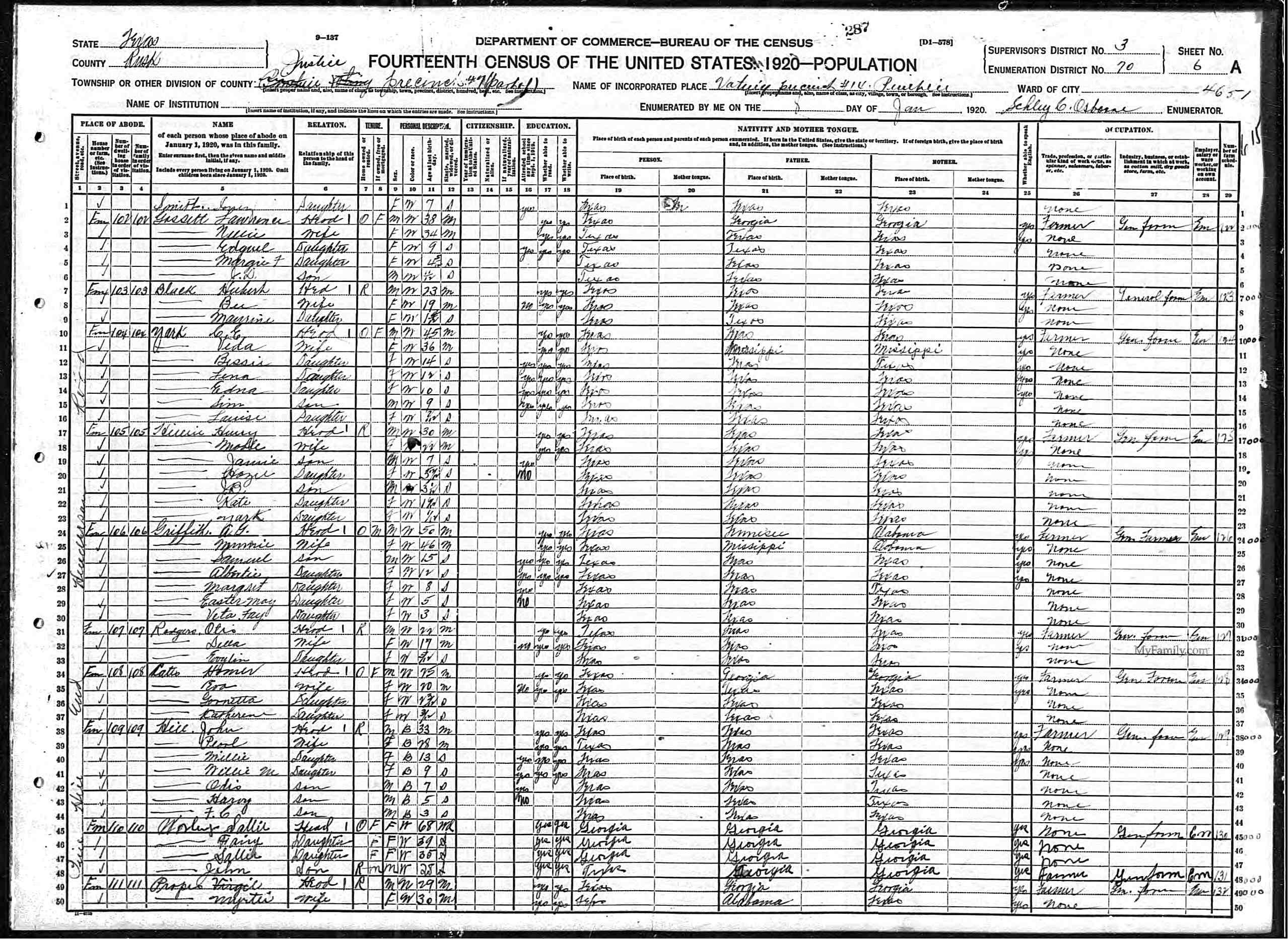 1920 United States Federal Census > Texas > Rusk > Pine Hill > District 70 > Line 24