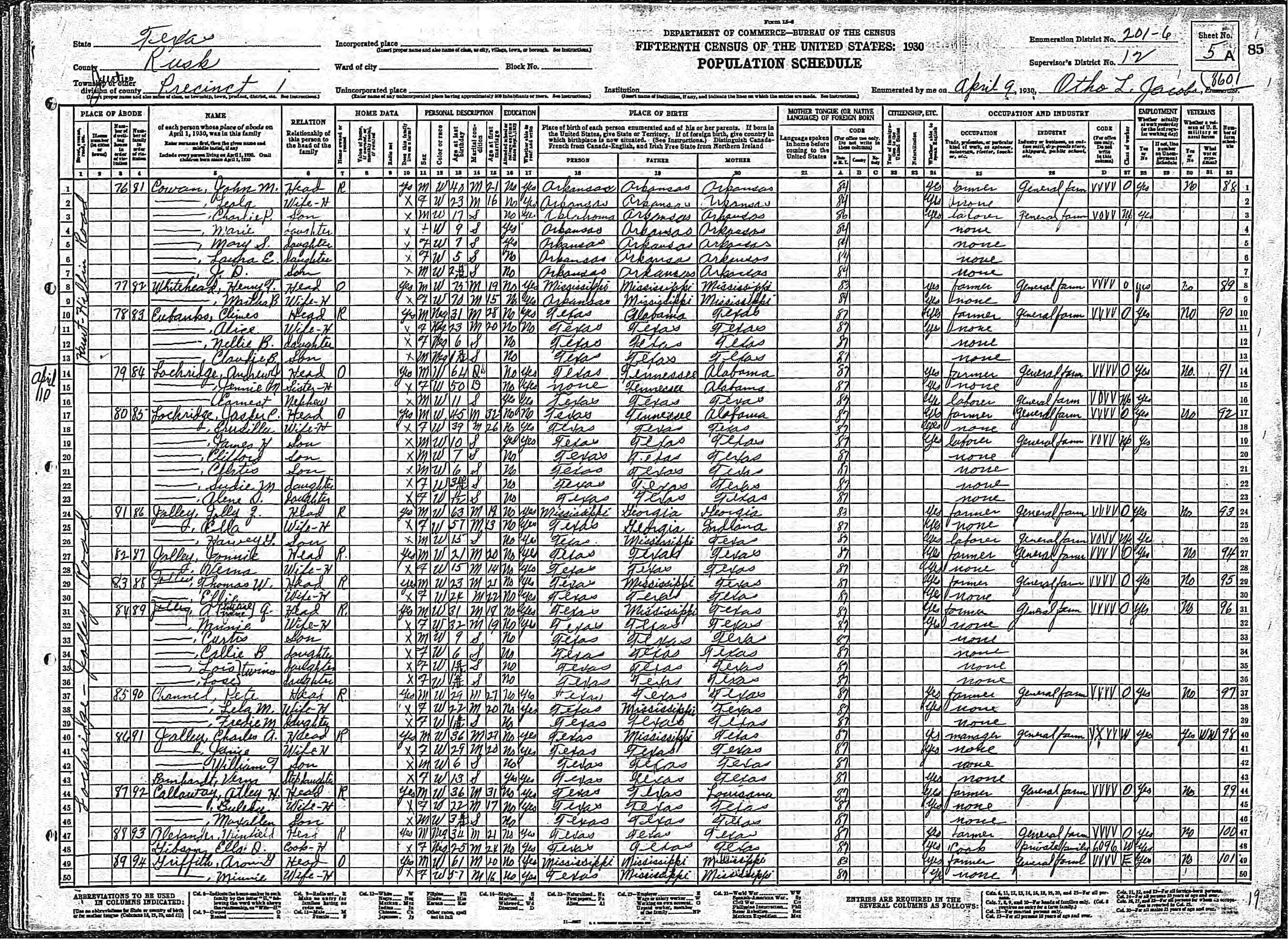 1930 United States Federal Census > Texas > Rusk > Precinct 1 > District 6 > Line 50