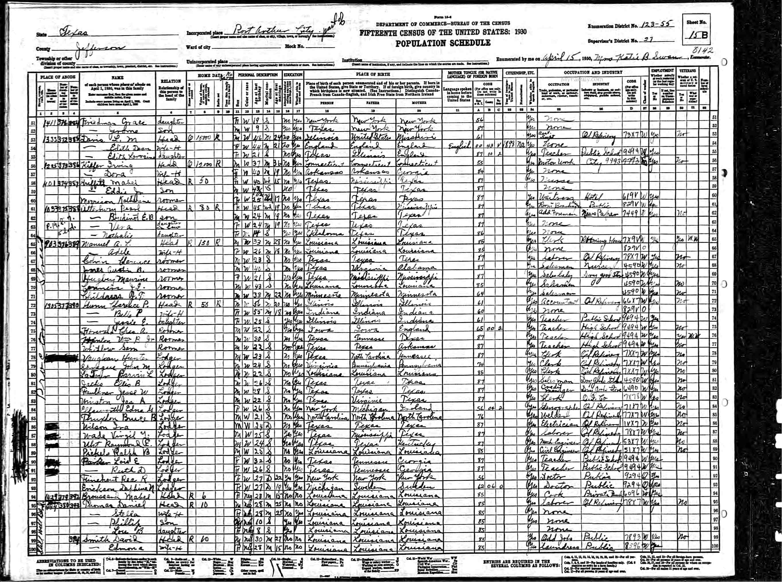 1930 United States Federal Census > Texas > Jefferson > Port Arthur > District 55 > Line 58