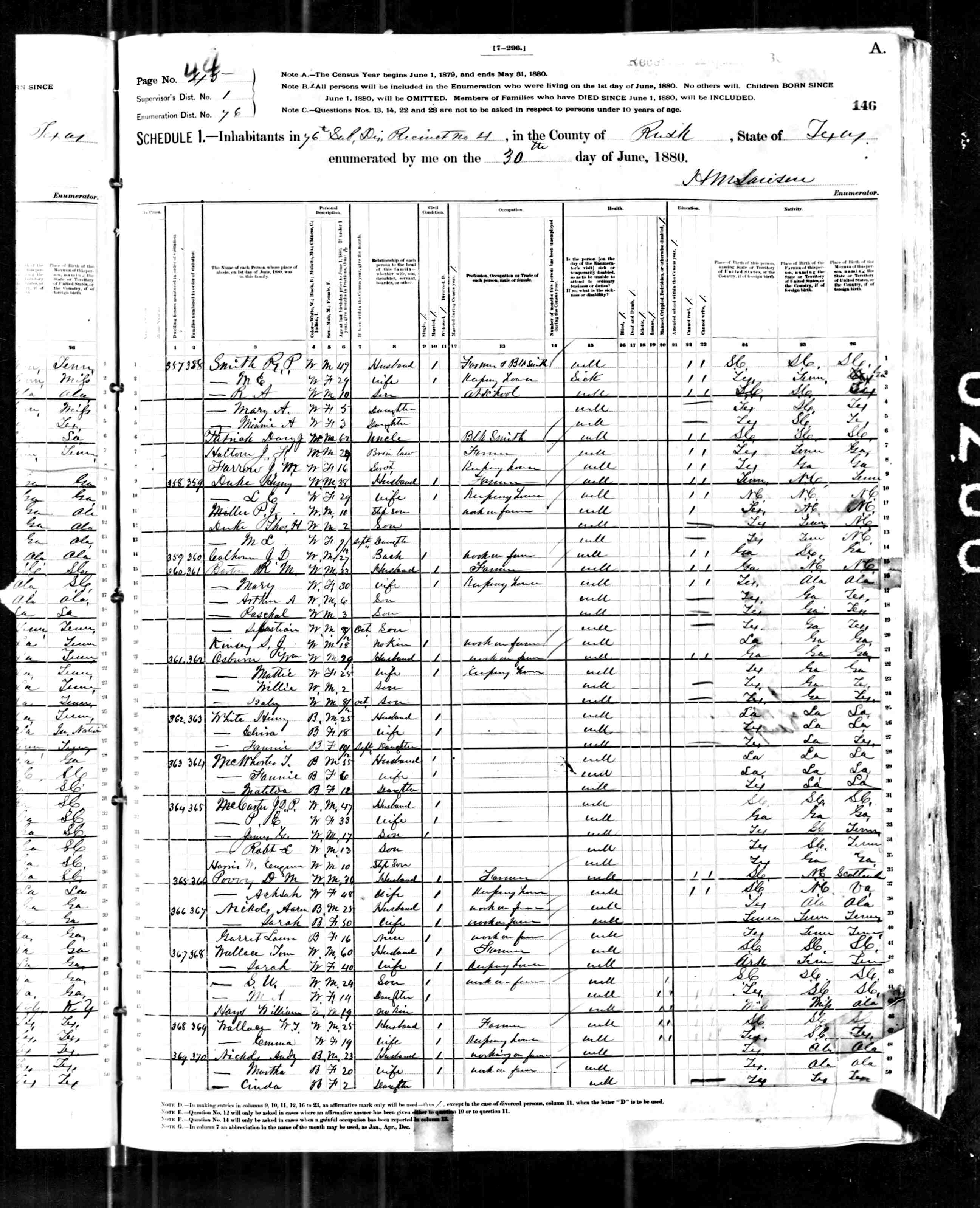 1880 United States Federal Census > Texas > Rusk > Henderson > District 73 > Line 26