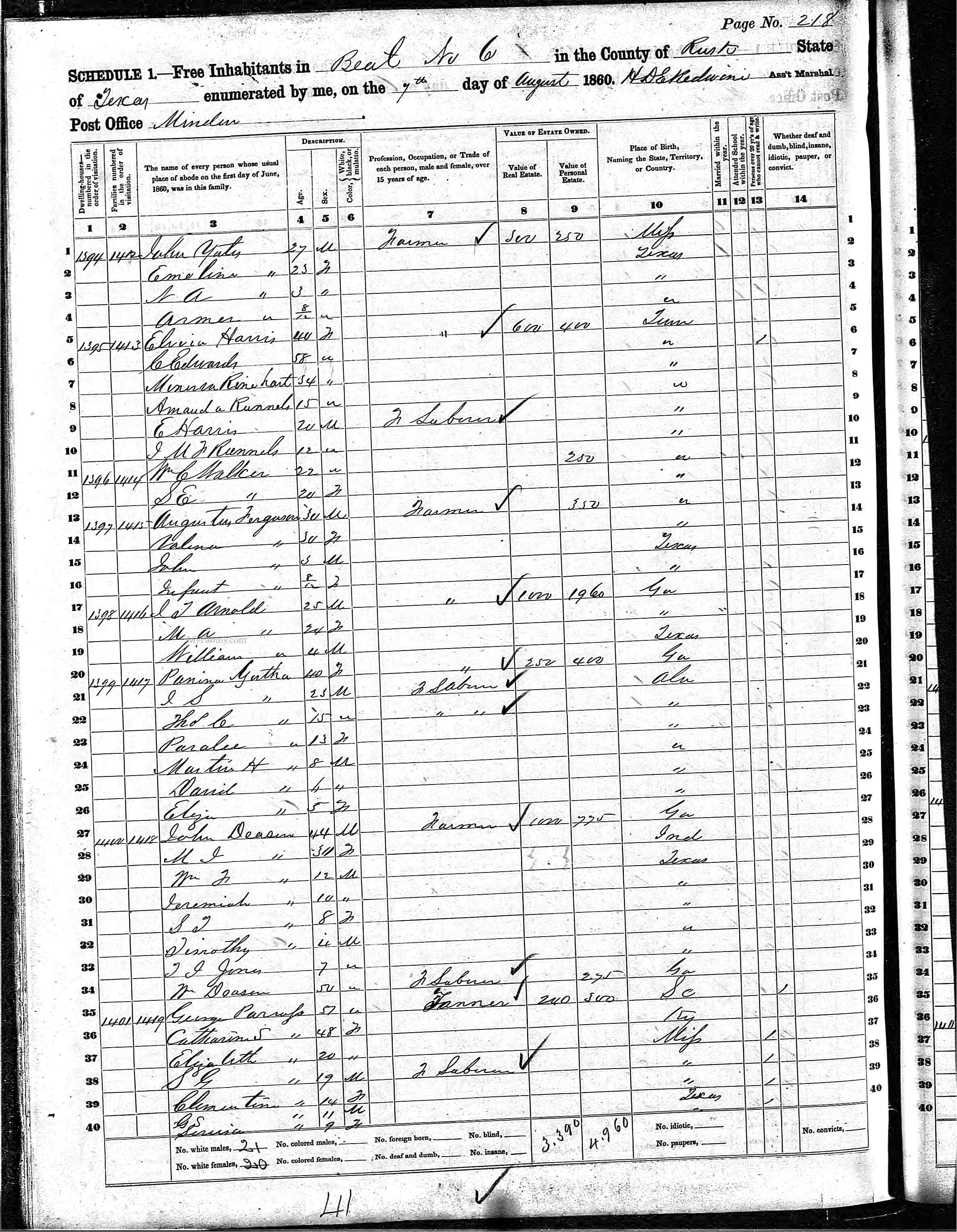 1860 United States Federal Census > Texas > Rusk > Beat 6 > Line 32