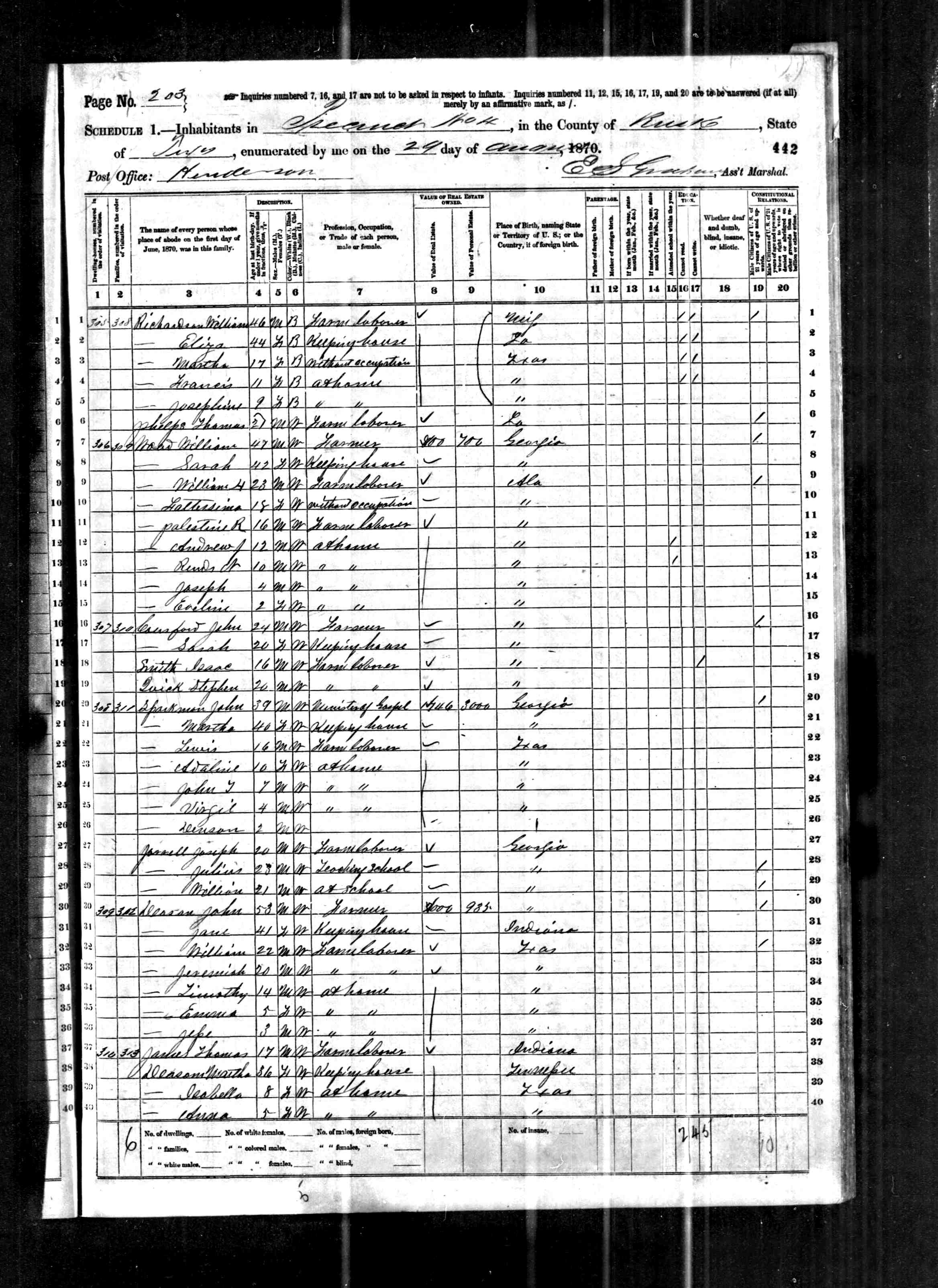 1870 United States Federal Census > Texas > Rusk > Precinct 4 > Line 34