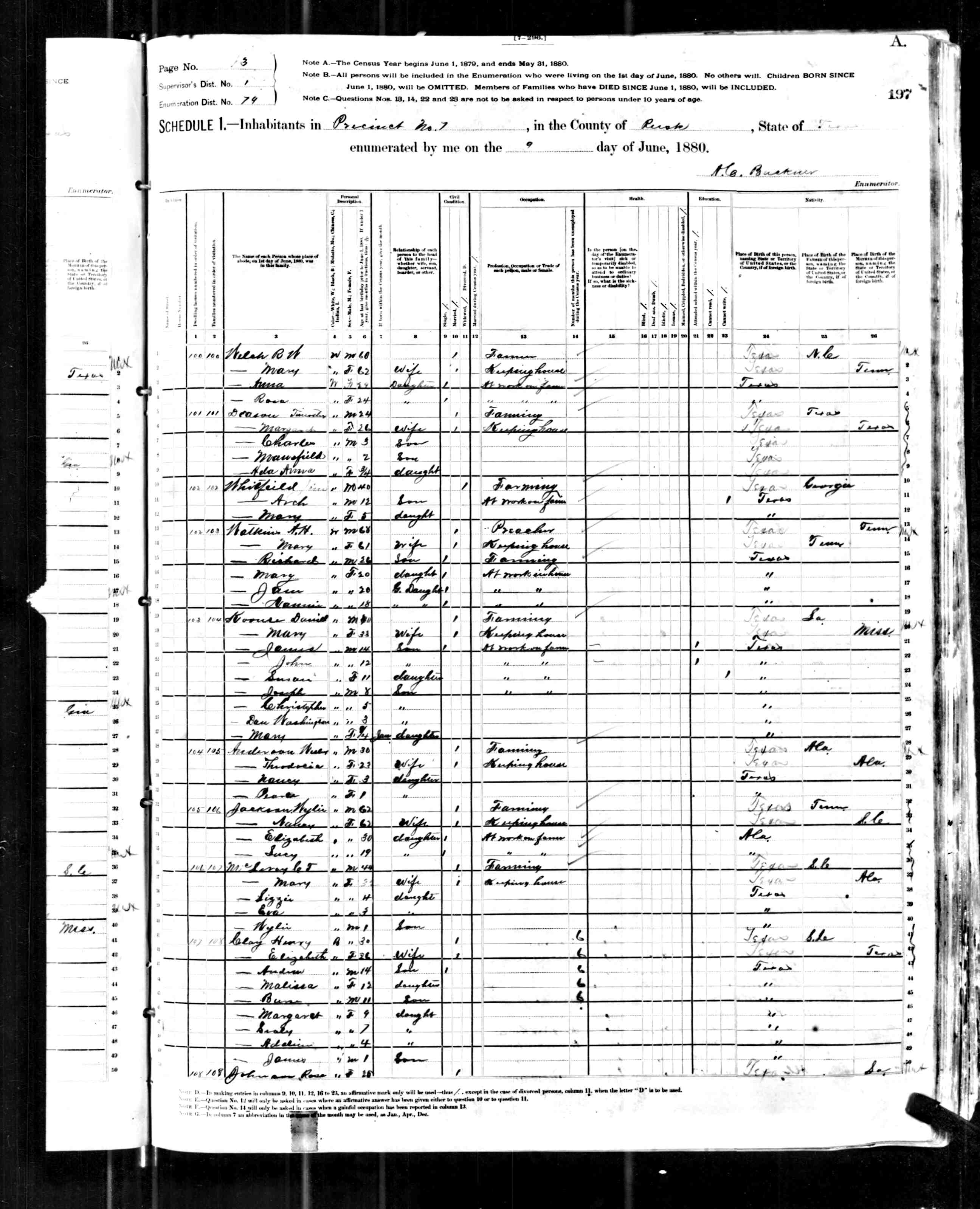 1880 United States Federal Census > Texas > Rusk > Precinct 7 > District 79 > Line 6