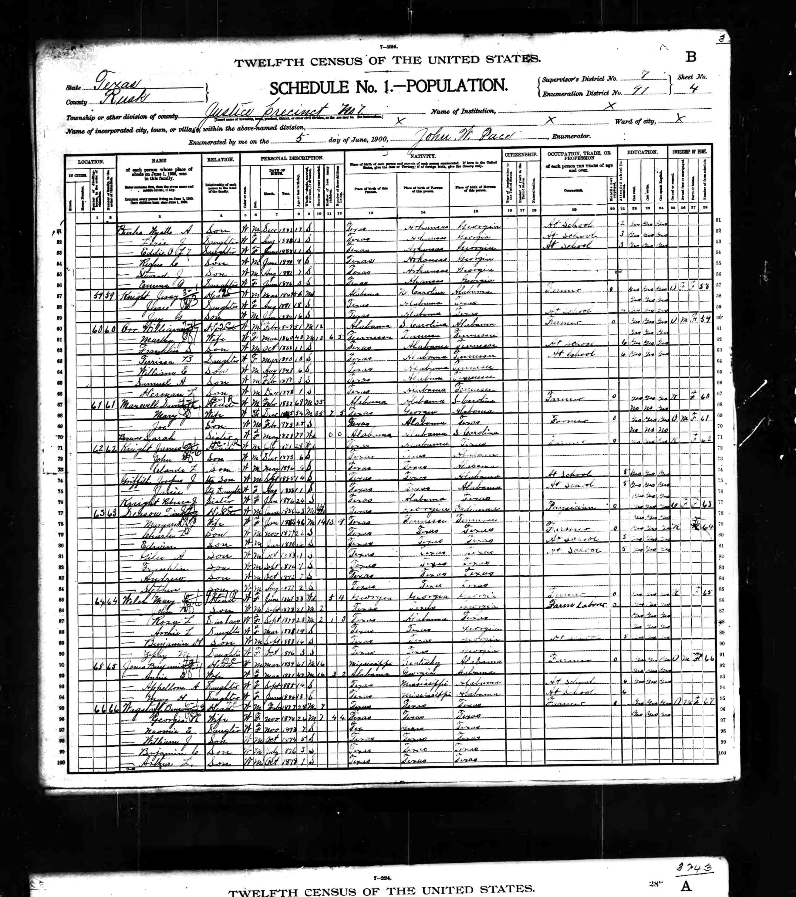 1900 United States Federal Census > Texas > Rusk > Justice Precinct 7 > District 91 > Line 77