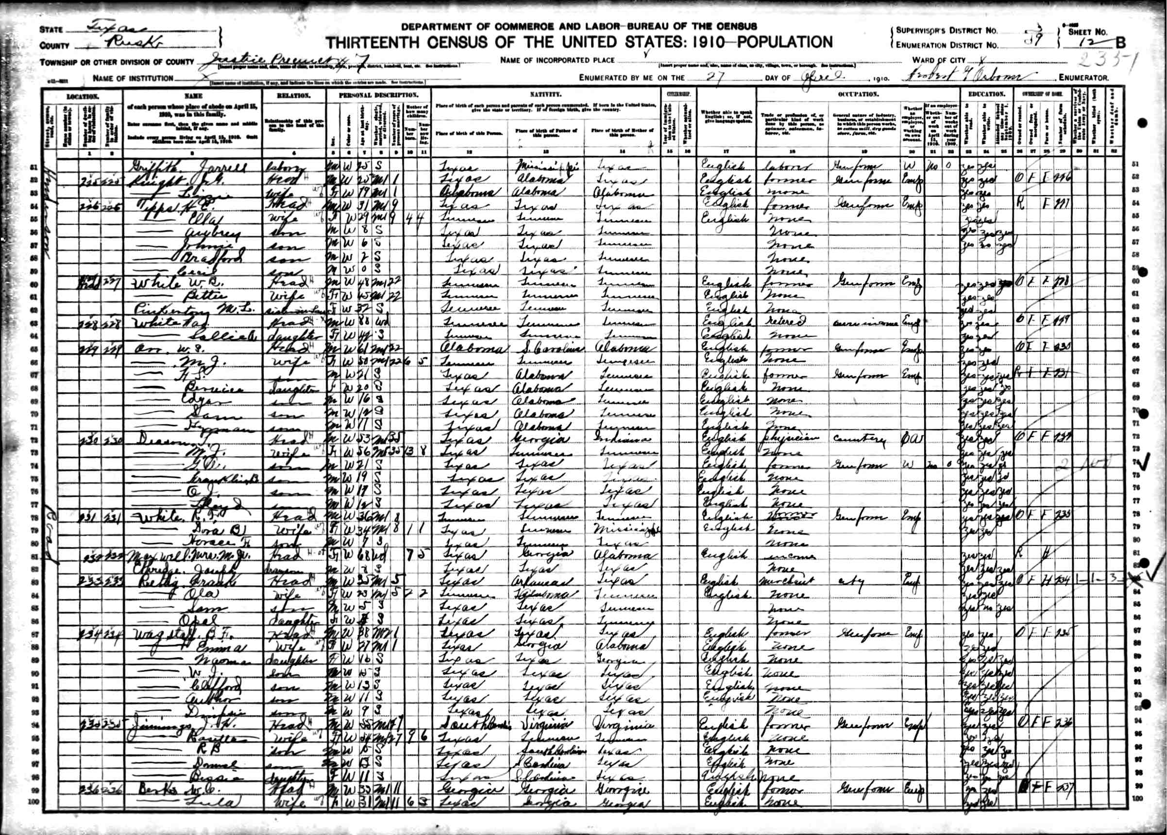 1910 United States Federal Census > Texas > Rusk > Justice Precinct 7 > District 59 > Line 72
