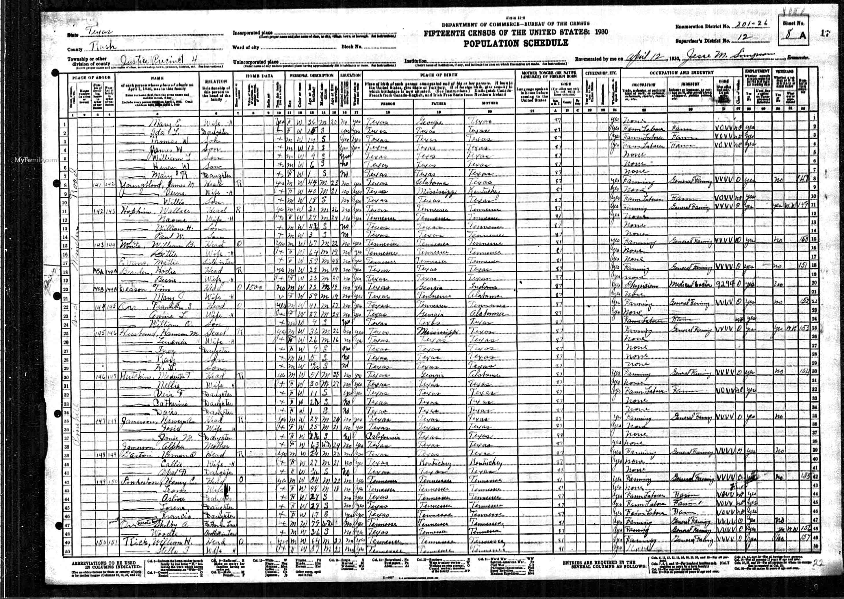 1930 United States Federal Census > Texas > Rusk > Precinct 7 > District 26 > Line 20