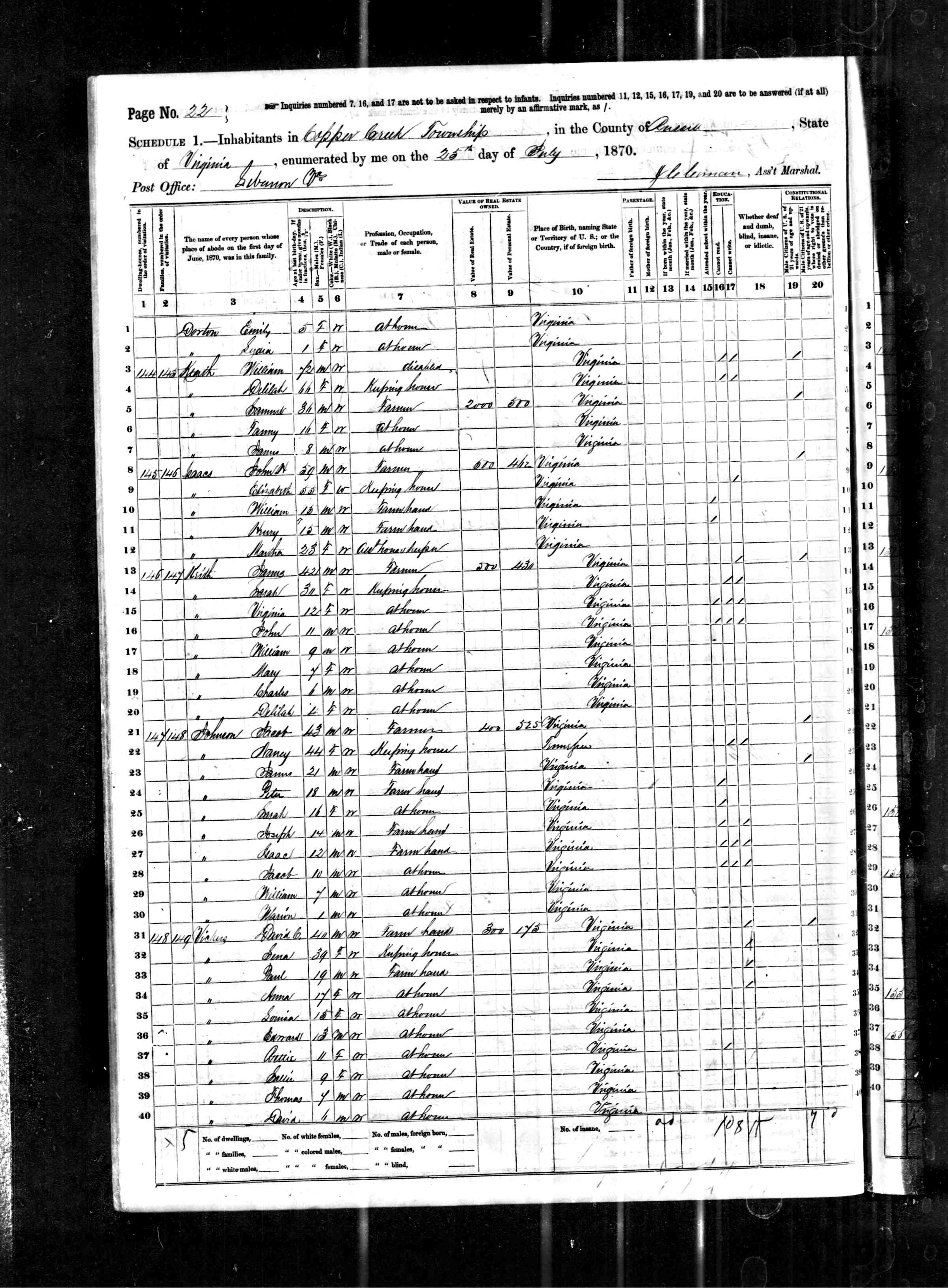 1870 United States Federal Census > Virginia > Russell > Copper Creek > Line 39