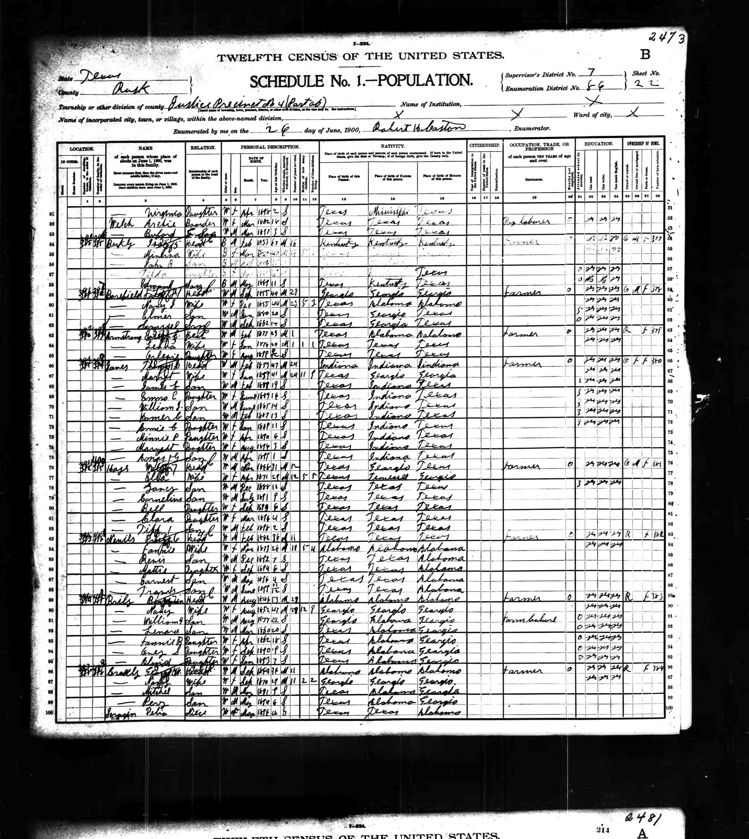 1900 United States Federal Census > Texas > Rusk > Justice Precinct 4 > District 86 > Line 48