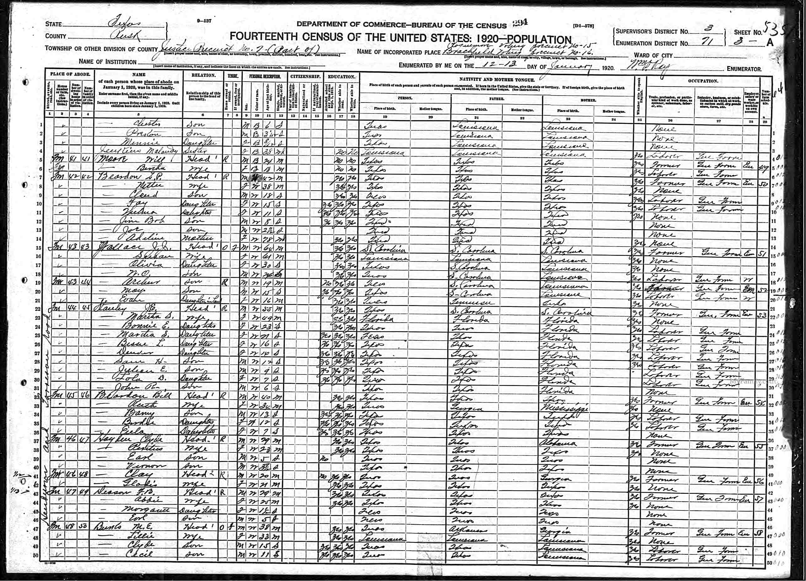1920 United States Federal Census > Texas > Rusk > Roguemore and Brockfield > District 71 > Line 33